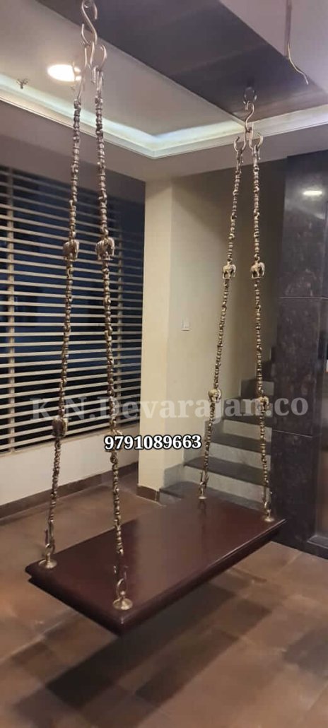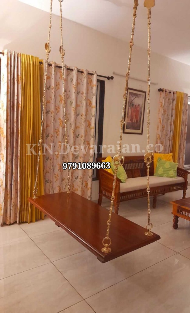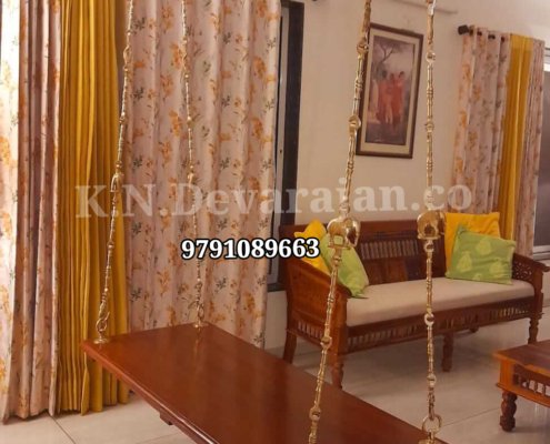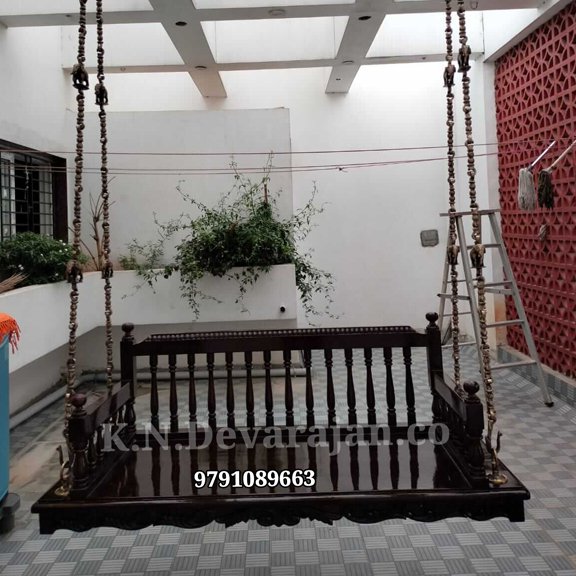 K. N. Devarajan & Co. offers beautifully crafted indoor wooden swings designed to enhance any living space. Made from premium-quality hardwood, each swing ensures strength, stability, and long-lasting durability. The polished finish and detailed craftsmanship add a touch of traditional elegance to the home. Its comfortable seating design makes it perfect for relaxing, reading, or unwinding after a long day. Strong and secure hanging chains provide safe suspension for everyday use. The wooden swing blends seamlessly with both modern and classic interior styles.